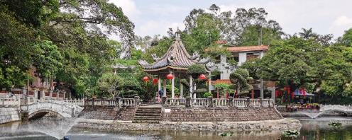 如今的潮州西湖公园,既拥有大片的茂密植被,又点缀着古色古香的历史建筑。园内的湖泊清澈透底,湖水碧绿,宛如一块镶嵌在大地上的翡翠。湖畔亭台楼阁鳞次栉比,依山傍水,让整个公园充满了江南水乡的韵味,一片静谧祥和之景。